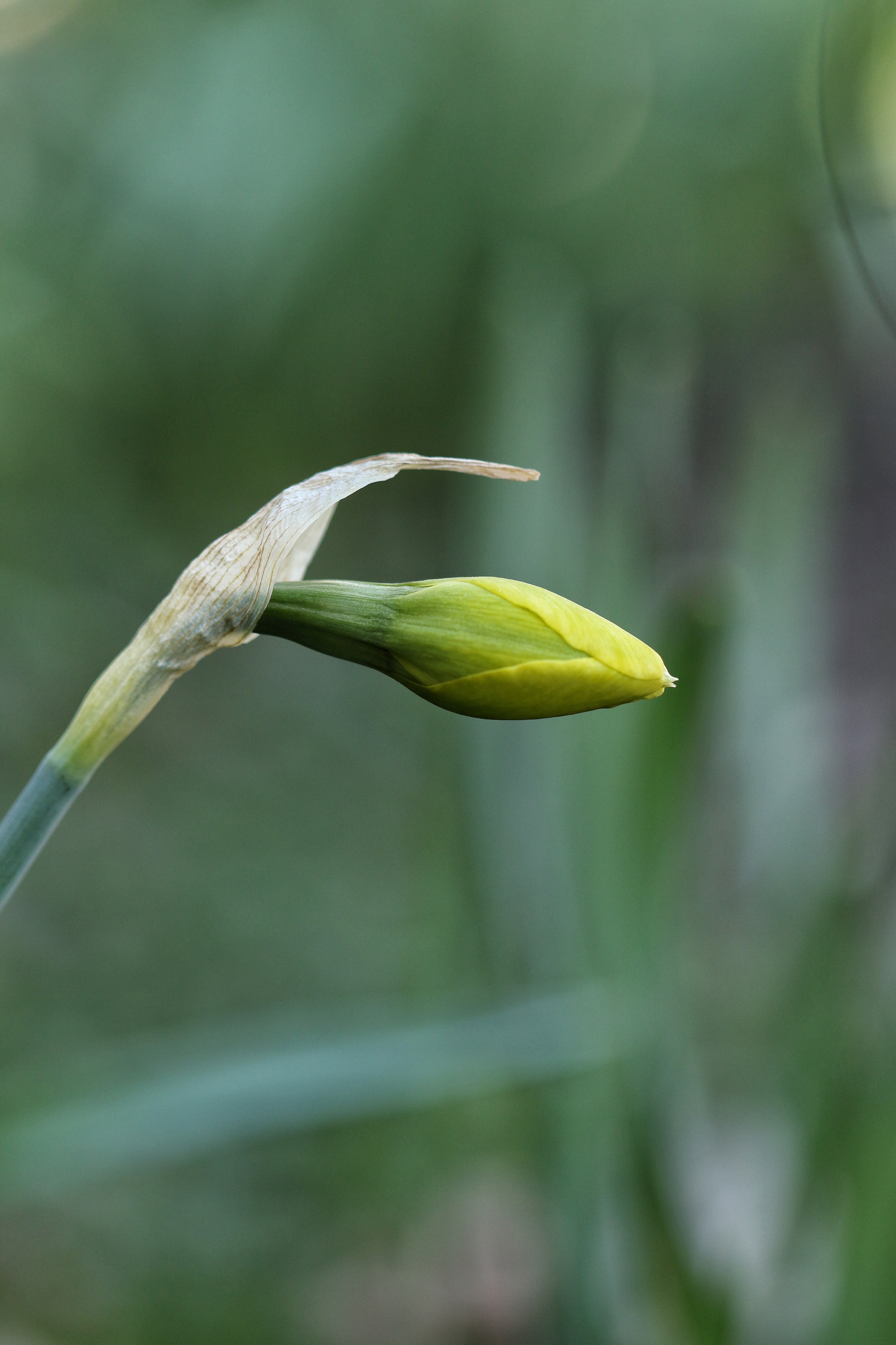 Knopp som venter på å bli påskelilje i mai. 100 mm Canons.