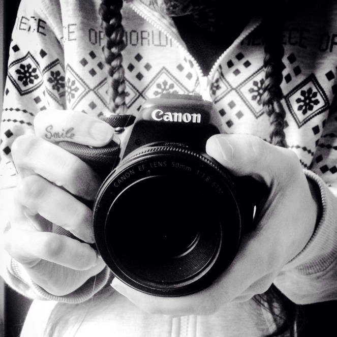 Dette speil- og selvbildet er et bevis på at jeg fortsatt er blant oss, og at jeg har kommet meg gjennom en del kamper for en normal hverdag. I dag, går jeg ut i verden med flettene mine og kameraet og skal på fotokurs. Knips, vi er bilder i bevegelse. Fanger med kort lukkertid. Stopper tiden som løper avsted i et ellers hektisk samfunn. Smiler, igjen. Kanskje lærer jeg noe nytt, uansett får jeg oppleve en flik av Oslo og andre fotografers favoritter, kanskje noe utstyr å spare til.