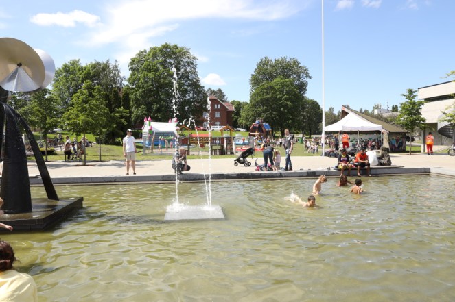 Her jeg bor, er det festival denne helgen. Jeg er i tettstedets sentrum og observerer.