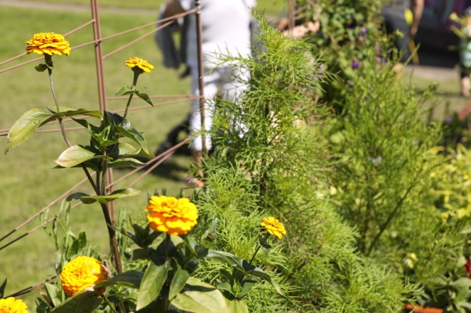 Helt avslutningsvis, fant jeg blomstrende kasser blant minglende mennesker. Vi var her sammen.