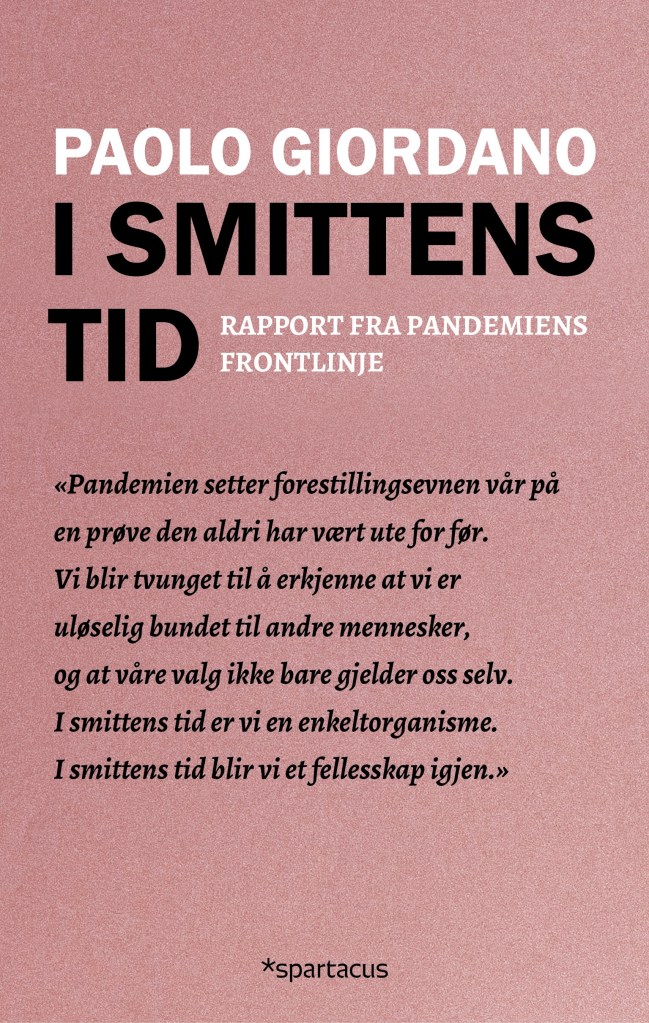 – I smittens tid. Rapport fra pandemiene frontlinje av Paolo Giordano, en bok om koronaSkuggen og dronninga av Lars Amund Vaage, en god roman om psykisk lidelse