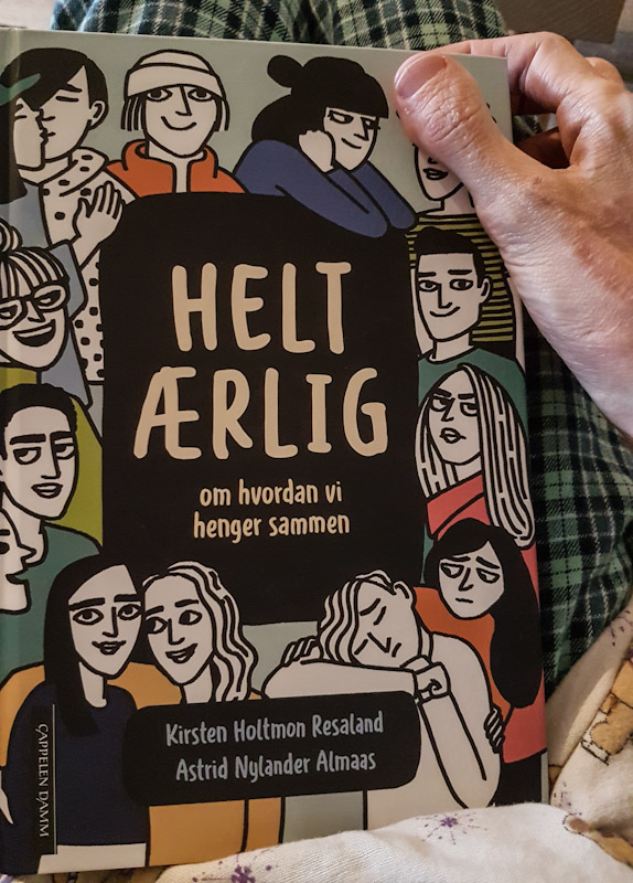 I sendingen var det samtale om boken til en psykolog og en lege. Den heter HELT ÆRLIG om hvordan vi henger sammen, er skrevet av Kristin Holtmon Resaland og Astrid Nylander Almaas (Cappelen Damm 2020) Boken min er fått som et lesereksemplar fra forlaget.