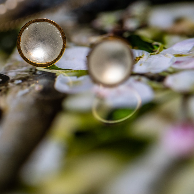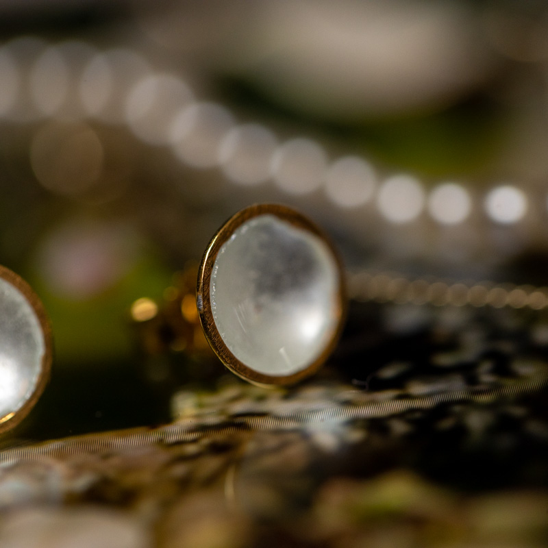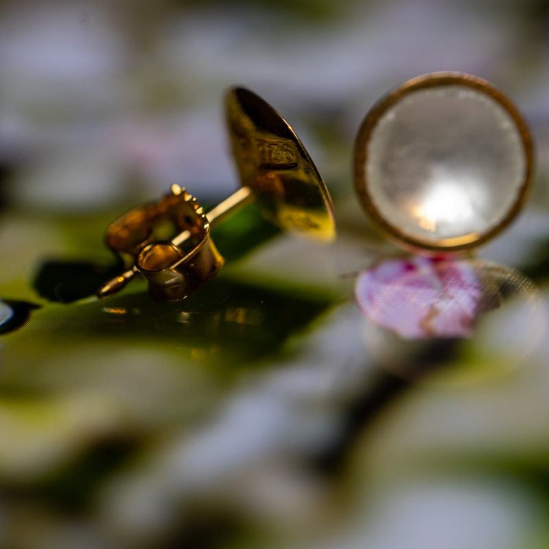 Disse er gullforgylte med «Snow white» emalje. Jeg fikk følelsen av å være en prinsesse, og tenkte på Snøhvit i eventyret om De syv dvergene, og jeg laget meg selv til en nostalgisk Disney-prinsesse. Jeg kombinerte med et eldre smykke med en blomst på (orkidé, av Aksel Holmsen) og tenkte at dette kanskje kunne være min versjon av eventyret. At etter det giftige eplet, kommer «prinsen» og en ny blomst. Bærer den frukter? Innlegget fortsetter under bildet.