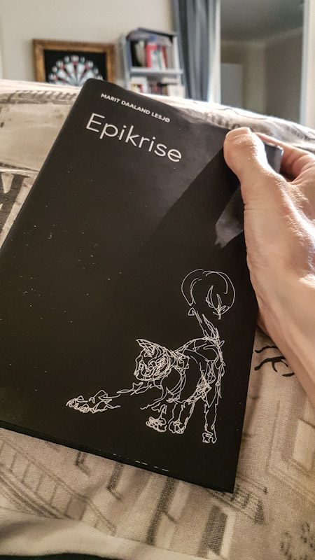 Boka heter Epikrise og er debutromanen til Twitter-kjendis @GrusommeMarit, Marit Daaland Lesjø (Aschehoug forlag, 2020), og jeg oppdaget den da jeg snakket med en forfatter jeg er stor fan av. Hun skal lese denne i sommer, så da gikk jeg på bokhandelen og skaffet meg den jeg også – så kan vi dele en leseopplevelse. Det blir vel ekte ferieminner? Men det var en digresjon, nå skal jeg skrive om denne boken.