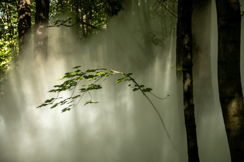 Jeg fikk også føle lys og skygge, i samspill, jeg fikk lyst til å danse. Jeg fikk også se, den sterke grønne fargen i kontrast, når trærne stakk over tåka.