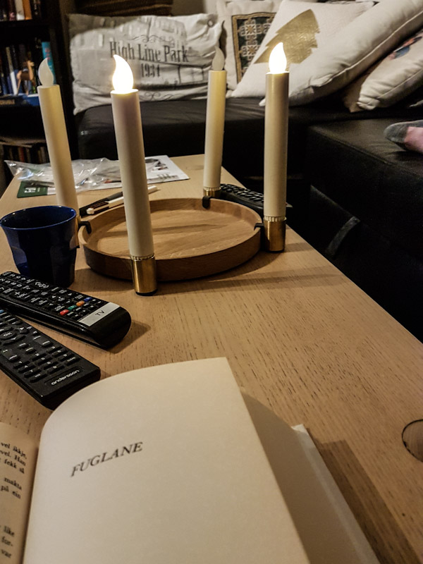 Eg har lese Fuglane av Tarjei Vesaas, ein roman som utkom i 1957. Vesaas skreiv han på nynorsk. Seinare er klassikaren publisert også på bokmål. Eg las ein nynorsk versjon, i ei samleutgåve med tre romanar av forfattaren (Gyldendal Norsk Forlag A/S 1988).