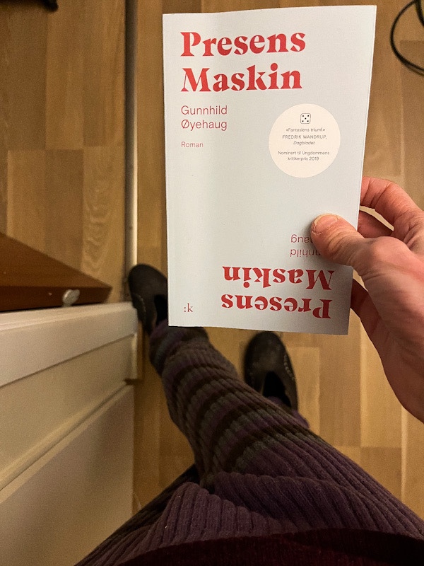 Boka heiter Presens Maskin (Kolon forlag 2018, 2. utgåve 2019) og ho er skriven av Gunnhild Øyehaug. Boka har eg fått som eit lesareksemplar frå forlaget, og boka er i vinden att nett no fordi ho har blitt godt motteken i USA. Det pirrar meg.