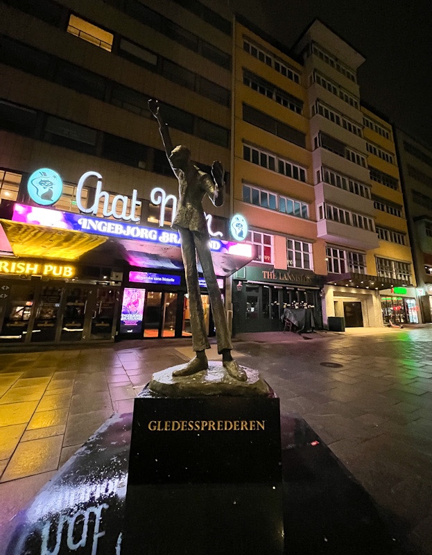 Jeg vil gjerne være en geldesspreder. Jeg tok bilde av statuen av Leif Juster, og på sokkelen stod tittelen Gledesspreder. Som han var.