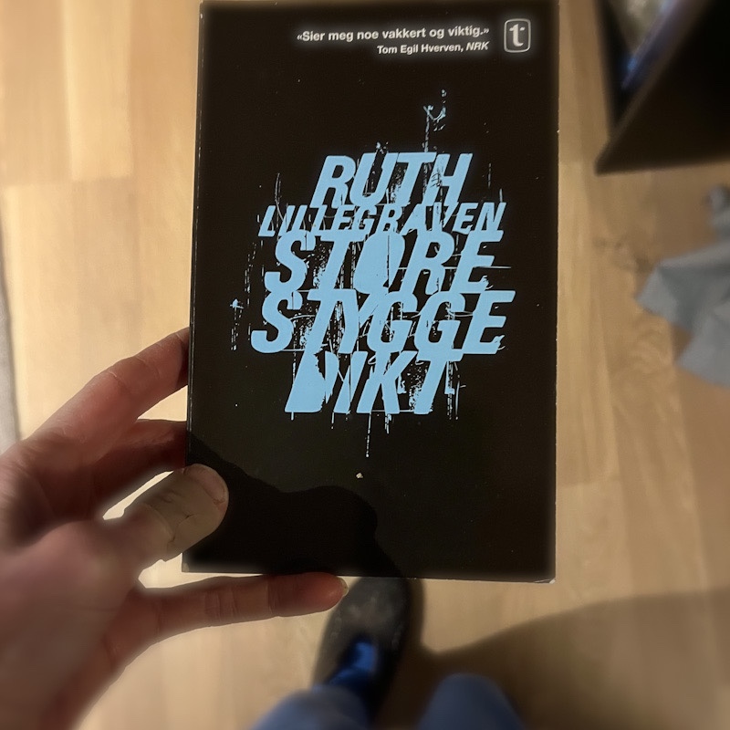 Eg har lese anna av forfattaren før som også er verdt å lese synst eg: Manilahallen (utgitt 2014), en slags roman frå psykiatrisk avdeling, i diktform, og Dette er andre dagar (2021) som er poesi frå pandemitida.
