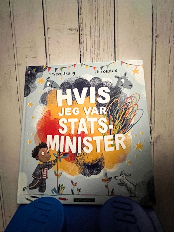 Jeg syns det var veldig stas, og trygt og lovende, å høre at han skulle skrive barnebok. Nå er den kommet ut, og heter Hvis jeg var statsminister (Cappelen Damm 2022). Det er en bildebok illustrert av Ella K. Okstad. Boka mi er fått som et lesereksemplar fra forlaget.