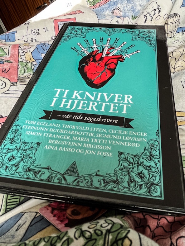Jeg har lest Ti kniver i hjertet – vår tids sagaskrivere (Gloria Forlag 2018). I boka har skarpe penner som lever og produserer tekst nå for tiden, blitt invitert til å skrive en kort fortelling som tar utgangspunkt i en scene, hendelse eller skikkelse fra de gamle sagaene.
