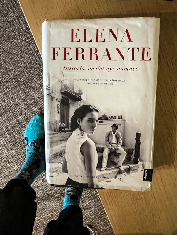 Og Elena, ho har treft ein anna kjærleik, kjenner ho seg elska no? Eg har så mykje eg vil vite om, enno eg har lese nesten 600 sider til i Napoli-kvartetten. Boka vandrar, og eg vil vere med. Eg gler meg til eg tar fatt på bok tre.