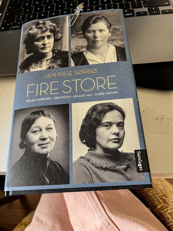 Dei fire store han har valt ut til gjennomgangen – av både livet deira og forfattarskapen – er Marie Takvam, Aslaug Vaa, Gro Holm og Hulda Garborg. Sjølv visste eg eit og anna om Takvam og Garborg, dei to andre hadde eg høyrd lite om – med unntak av podcast i vår basert på boka eg no har lese, som vekka mi interesse og fekk meg til å ha lyst til å lese Sørbø si bok.