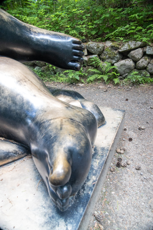 Når jeg er ute og går, tar jeg inn inntrykk og lager meg ord i hodet, som gir nye bilder på det jeg ser. Som denne skulpturen i Ekebergparken, en stor kvinne som lå og hvilte, gav meg assosiasjoner til både føtter (feet), størrelse (Big and Beauty), vekt (klasse), å passe inn (fit), bli matet (feeding). Innlegget fortsetter under bildet.