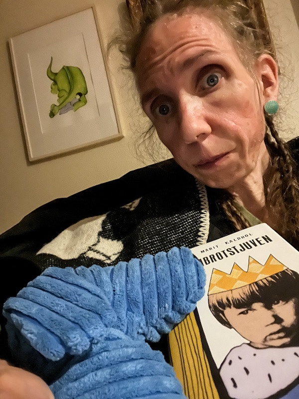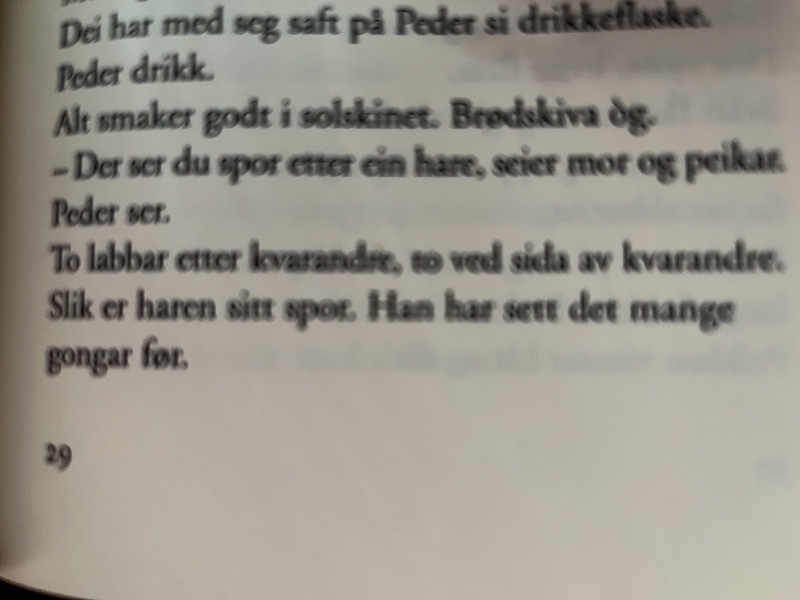 I tillegg til å vere ei emosjonell, spennande og ba(r)nebrytande oppleving for meg, er språket særskilt godt etter mi vurdering med barnebrillene på. Kaldhol har brukt korte setningar som syner mykje. Dei språklege bileta er tydelege og lette å førestille seg, eg framkalla dei i både lyst og mørkt indre rom. (Innlegget mitt fortset under biletet.)