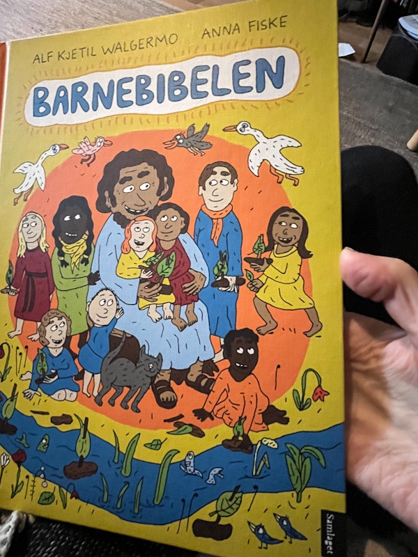 Eg har lese ei storslått illustrert barnebok, Barnebibelen av Kjetil Walgermo og Anna Fiske (Samlaget 2022, lesareksemplar frå forlaget).Forteljingane i boka er attforteljingar av tekstar frå Bibelen.