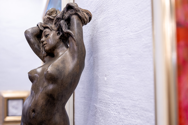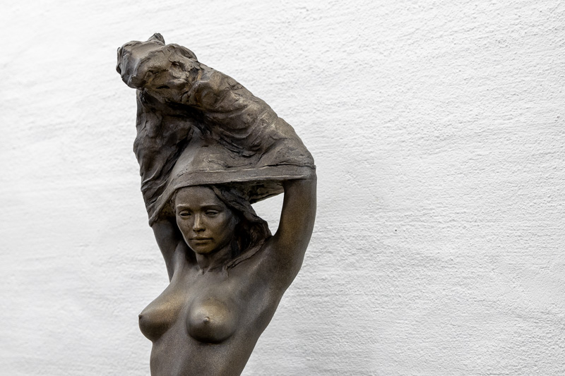 På det ene galleriet til Reidar Finsrud, der jeg fikk lov å ta bilder 10. september, fikk jeg mange fine titler i hodet da jeg betraktet skulpturer og bilder. Det var en god opplevelse, nok en gang. Jeg vokste også litt opp med å besøke kunstgalleriet i min egen barndom. På gulvet har han akvarium. I dag deler jeg litt verdien av å få inputs, og spinne videre på det en observerer, ser og føler som et resultat av det. Bildene i dagens innlegg, gav meg ordene «Over hodet». Innlegget fortsetter under bildet.