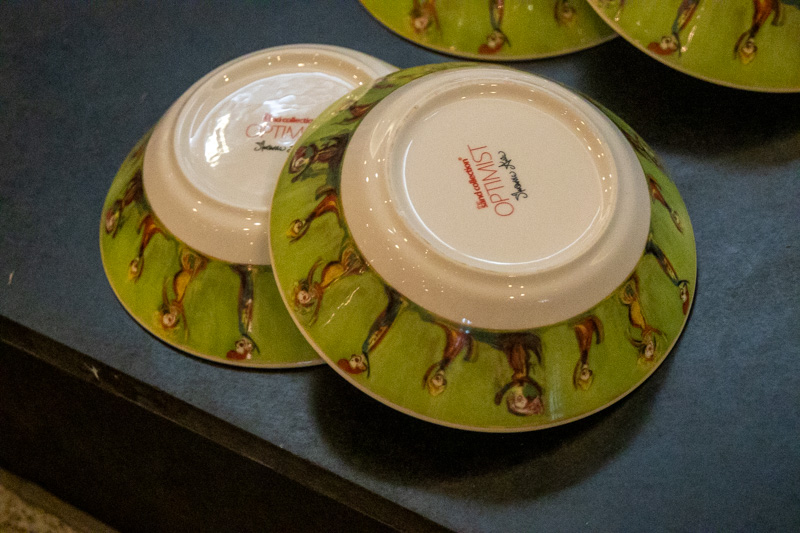 Det var Sand-utstilling i foajéen da jeg var på Kolben 7. oktober for å se Kolbotn fotoklubb sin utstilling i biblioteksgalleriet, og der var disse klovneskålene – plassert slik opp ned – designet av Marianne Aulie. De fikk meg til å smile, og ønske meg en slik til et måltid som skulle kjennes ålreit.