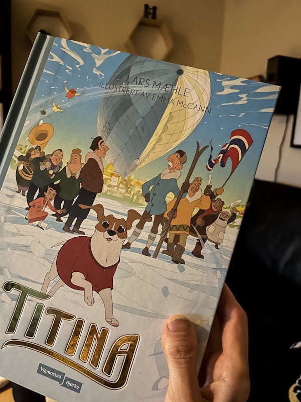 Film og bok har fått hundens navn, Titina, og boka er skrevet av Lars Mæhle med illustrasjoner av Emma McCann. Boka har Vigmostad & Bjørke gitt ut. Min bok er et lesereksemplar fra forlaget.
