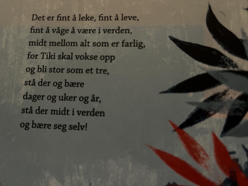 Personlige refleksjoner i bokspeil: Boka minner meg om da jeg selv var så redd for å være i verden, så redd for å ta min plass. Jeg bodde mye på sykehus. Det var tryggest, for verden også. Jeg var i trygge rammer. Men jeg fikk ikke være ordentlig i live. I det fine livet! Klart det er vanskelig å leve i en farlig virkelighet, i verden, men jeg prøver likevel å være her.