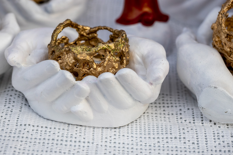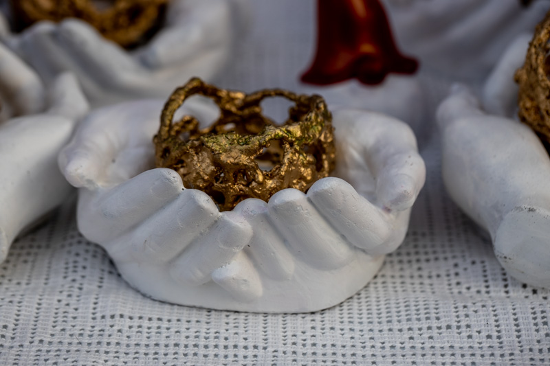 (Illustrasjonsfotografier: Julemarked Folkets hus Ski (19. november 2022), jeg tror det er sementkunst av Ulla Skar. Jeg syns gullet lå så fint og skjørt i hendene. VI må ta vare på hverandre, og det inni oss, som gull. Akkurat som mennesker er verdt.)