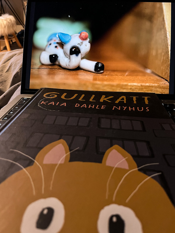 Det er ikke så vondt å være redd om man kan være redde sammen, redde hverandre? Det tenker jeg, når jeg leser. Jeg har ingen Gullkatt, men jeg har denne boka. Boka passer på meg, med at forfatter-Kaia finns – en skrivestemme ute i verden som sier at at noen føler eller tenker eller trenger det samme som meg/deg.