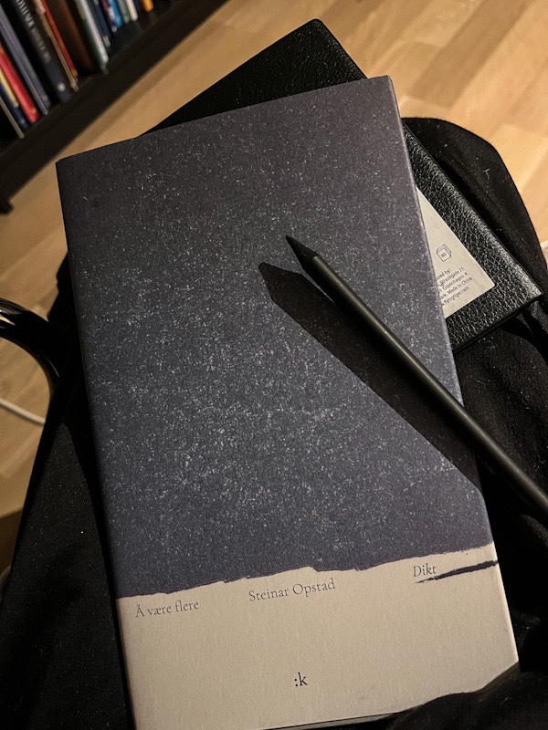 Jeg har lest Å være flere (Dikt) av Steinar Opstad (Kolon Forlag 2022, lesereksemplar har jeg fått fra forlaget). Det er en diktsamling om døden. Den som er og tar bort, og som danner noe nytt, sitter jeg igjen med. Og sum av summarum; mest om livet.