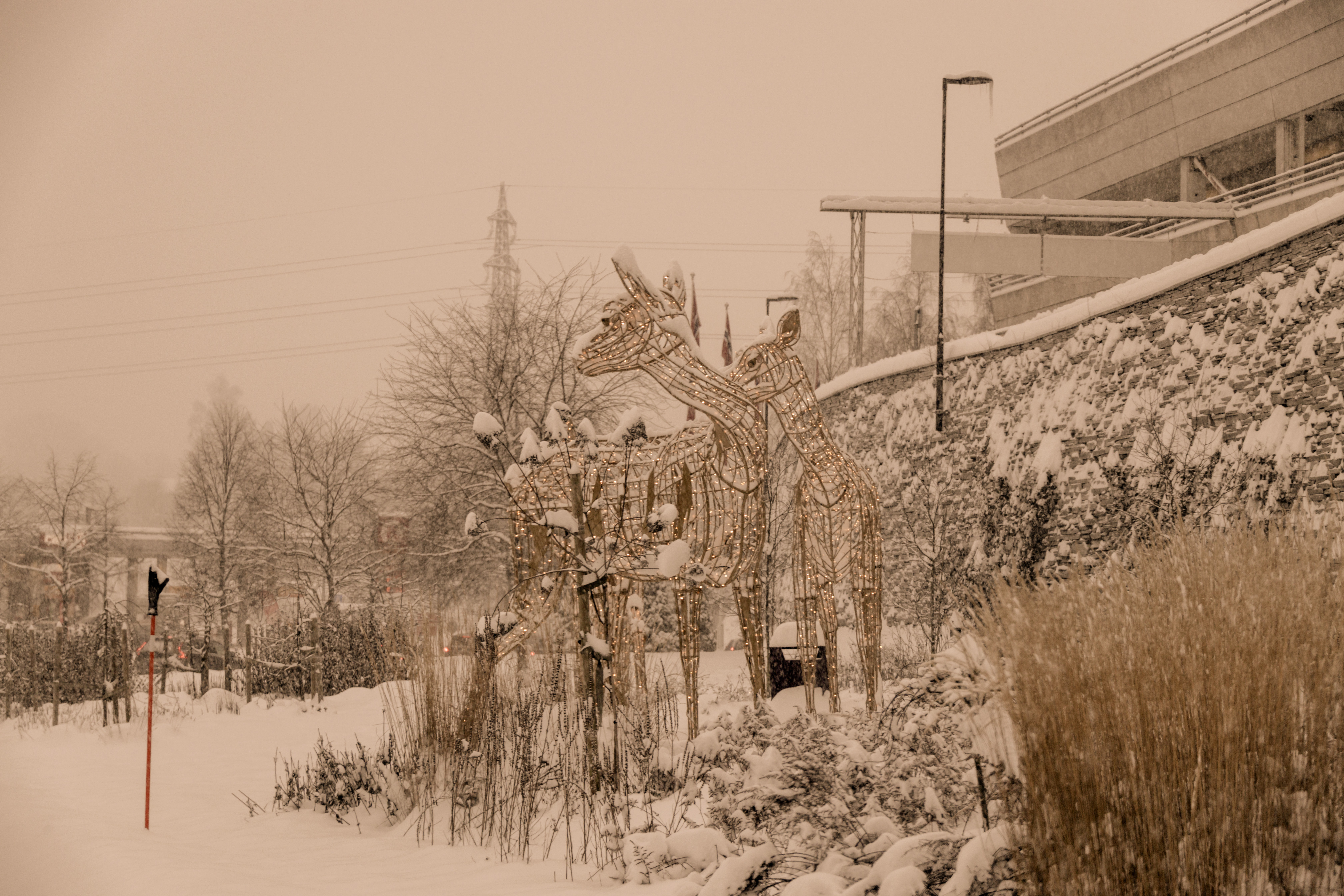 Nissen er vel mest kjent for sine reinsdyr. Men disse utenfor Ski storsenter, minnet meg om rådyr. Og jeg delte opp ordet, isolerte, fikk både råd og dyr. Og dyr i to betydninger! – som de vi holder av, for eksempel kjæledyra, og kostnadene – for eksempel strømregningen!