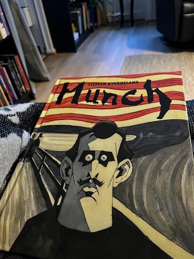 Tegneserier har jo eksistert lenge, men jeg syns det virker som de senere årene har blitt både en mer anerkjent kunstform og litterær form. Tegneserie er i vinden, er litt «siste skrik» som jeg har tro på vil stå seg: Større verk blir utgitt også i denne formen, både for barn og voksne, litteratur og historie gjerne forent og pakket inn i kunst. Steffen Kverneland er en av forfatterene og illustratørene – begge deler i ett – som har laget storslåtte bøker de siste årene, og i 2019 ble boka jeg nå har lest av NRK kåret til en av de ti viktigste bøkene det siste tiåret. Boka er Munch av Steffen Kverneland (No Comprendo Press 2013).
