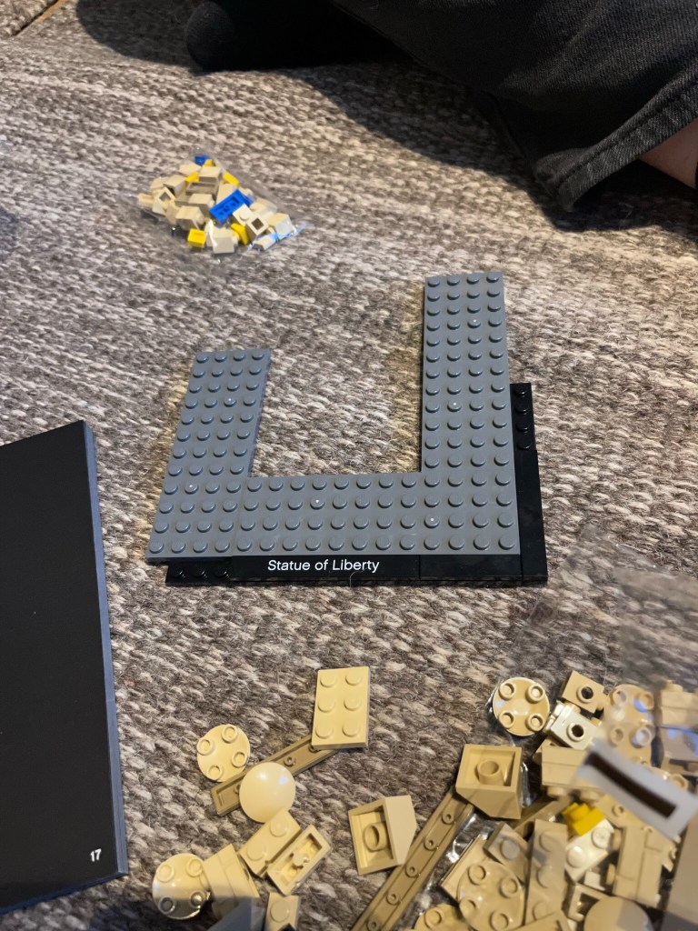 Da jeg kom hjem i går, bygget jeg fred og frihet i lego (Frihetsgudinnen).