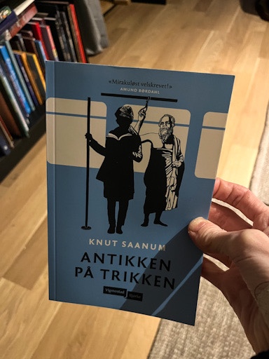 I 2022 leste jeg Sofiens verden, både Josteins Gaarders opprinnelige roman og tegneserie-adapten på bind 1, og Jostein Gaarders Julemysteriet. Disse romanene, åpnet blikket mitt for filosofien. Nå hadde jeg anledning til igjen å opne øynene, litt mer, for livets store spørsmål. Antikken på trikken av Knut Saanum (Vigmostad & Bjørke 2021, denne pocketutgave 2023, lesereksemplar fra forlaget) er en lettlest liten sakprosabok, en introduksjon til antikkens tenkere.