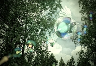Dette bildet ble til for mange år siden. Jeg hadde fotografert en skjære, en fri fugl. Jeg hadde fotografert såpebobler. Jeg fikk hjelp av broren min til å sette fotografiene mine sammen til ett. Det ble en skjærefugl fanget i en boble.