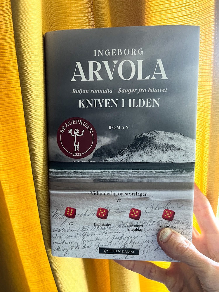 Jeg har helt siden jeg så live-streamingen under Brageprisen 2022 hatt lyst til å lese boka som var vinner: Den historiske romanen Kniven i ilden av Ingeborg Arvola (Cappelen Damm 2022). Gjennom å lese særlig Aina Basso har jeg fått øynene åpnet opp for nettopp historiske romaner. De gir meg en menneskeforståelse over hva samfunnet vi lever i har å si for hva vi føler, tenker og er.