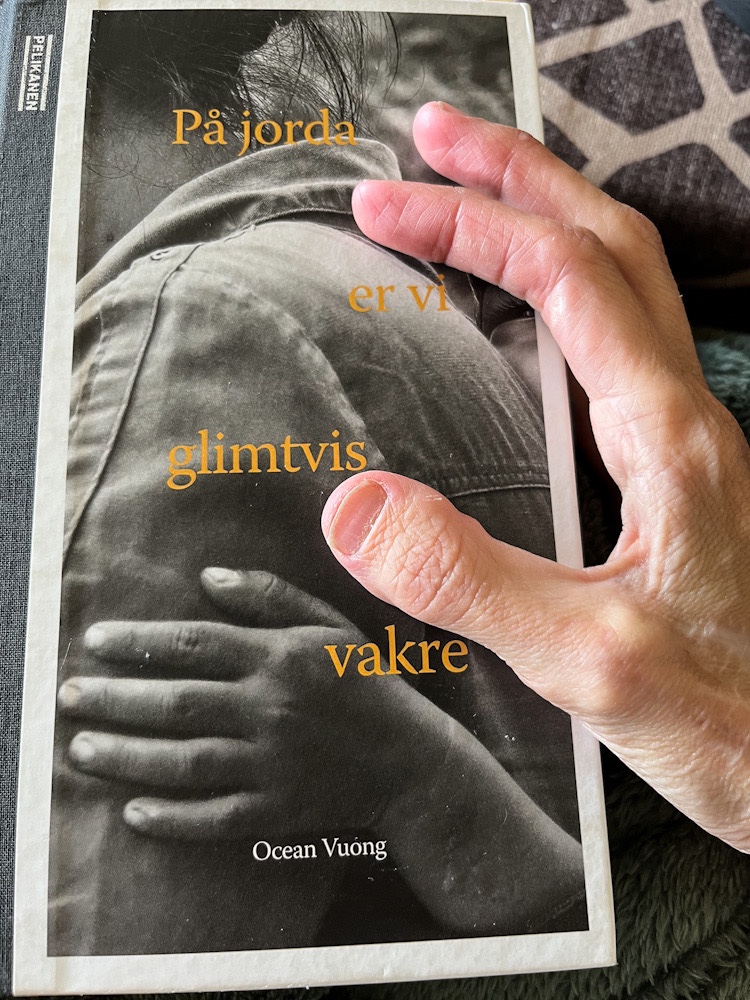 Eg har lese romanen På jorda er vi glimtvis vakre av Ocean Vuong (norsk utgåve Pelikanen forlag 2019).