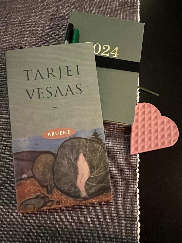 Eg har lese Bruene av Tarjei Vesaas, eit stykke klassisk, norsk litteratur frå 1966. Utgåva eg har er gitt ut i 1996 av Den norske bokklubben.