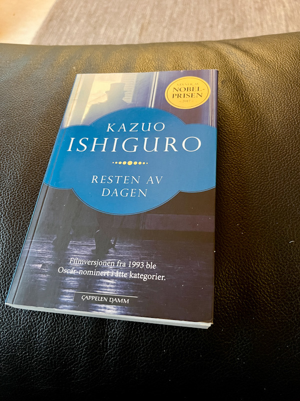 Jeg har lest Kazuo Ishiguros roman Resten av dagen fra 1988 som utkom på norsk i 2017 (Cappelen Damm), det samme året som forfatteren fikk nettopp Nobelprisen i litteratur.