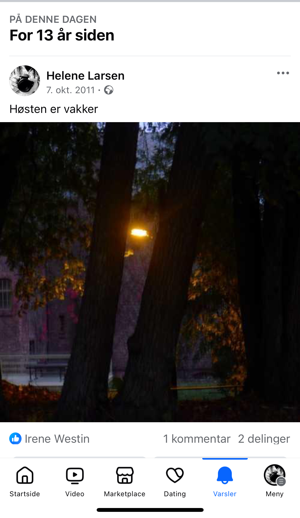 Tidligere denne uken kom det opp et minne på Facebook (se under). Det var fra veggen min – jeg delte på statusen min at høsten er vakker. Jeg hadde fotografert og skrevet akkurat det.