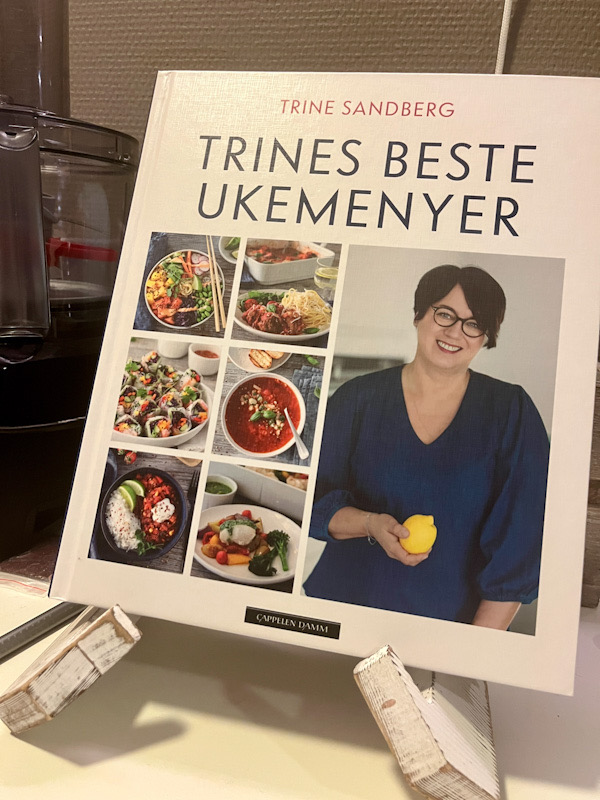 Jeg har lest og virkelig kost meg med en ny kokebok! Boka er skrevet av Trine Sandberg og heter Trines beste ukemenyer (Cappelen Damm 2024, lesereksemplar fra forlaget). På mange måter en praktbok i solid format med flotte fotografier, men av sorten som kan brukes hver dag, uke etter uke, året igjennom!