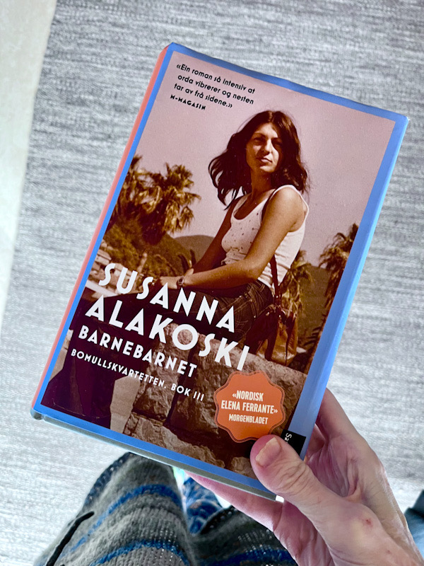 Barnebarnet av Susanna Alakoski (Samlaget 2025, lesareksemplar) kom nyleg ut. Eg jubla litt inni meg! Dette er den tredje boka i bomullskvartetten som eg hadde hatt så stor glede av å lese dei to første binda av.