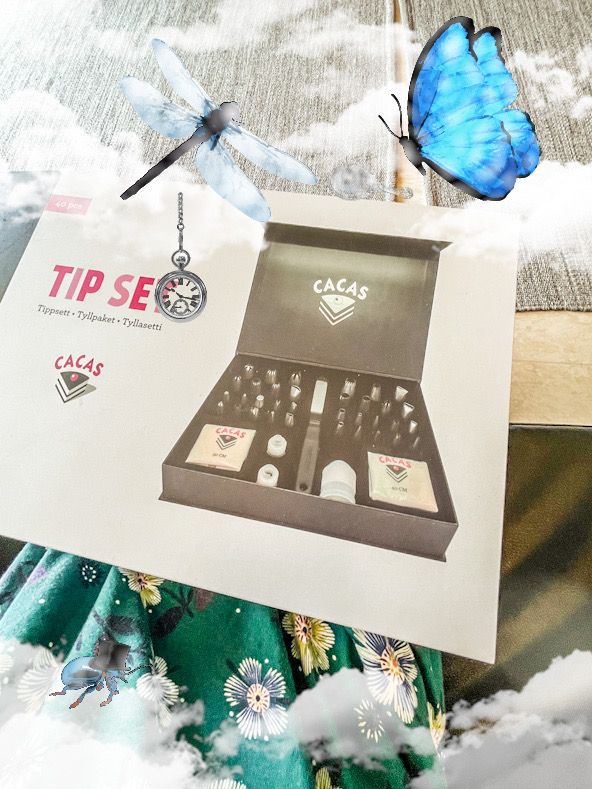 Innkjøpet er nærmest en beautybag for bakeren/konditoren, siden det er en koffert med redskapene til å gjøre kakene ekstra fine med for eksempel krem med blomstermønster. Med mange slags tipper til sprøyte-poser har jeg nå verktøyene jeg trenger til å prøve å bli flink også på det kosmetiske på det jeg kokkelerer fram. Det ser jeg fram til, for det kjennes litt magisk å mestre ulike teknikker, særlig hvis også smakene sitter! Jeg kjenner sommerfugler i magen. Kanskje er det en tid for alt, også for å bare ha det bra uten at alt må ha en større mening/verdi – men vent litt, å skape og tilberede mat på en bra måte har jo verdi. Vi trenger jo næring, og en del har det mye bedre når de kan få dele et måltid sammen – jeg også, selv om jeg trenger å spise min kostliste og ikke helt sånn som jeg inviterer andre til. Vi kan fortsatt sitte sammen, prate og ha våre ting i felleskap. Ja, bakeglede følger videre – og vil vise seg i bloggnotatene – forhåpentlig. To be continued, for å si det på flere språk – og: bake it till I make it!