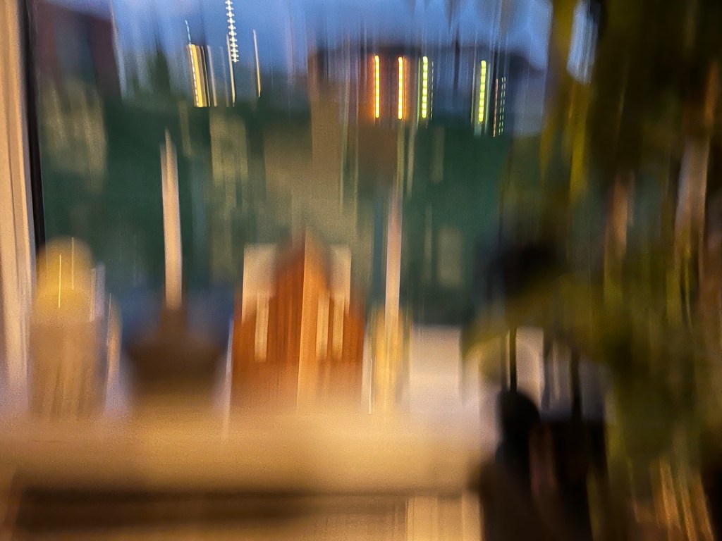 Så fort sensommer ser ut som å gå over i… høst! Kveldene er mørkere. Huset kan også bli: huskaldt i løpet av natta, tross: de varme dagene. Som i dag! Det var så fint og flott, jeg gikk søndagstur x 2 og det var flott. Jeg hadde det godt, først med å rydde og fikse litt hos meg, ja så fint det blei! Så leste jeg ut boka mi (Ingvar Ambjørnsen sin 23-salen). Dagen ellers var både klesvask, filmen Sommerboken – den passet godt nå med sommer på hell. I den er livet også på hell og det fikk meg til å ville ta enda mer vare på livet og det som godt er, her og nå – og dusj så jeg er klar til jobb i morgen. Det ser jeg fram til, som et lyspunkt og feiring av å få til å være meg, også på litt sykere tider enn da jeg var «ung og sprek» – eller i det minste uten osteoporose. Men shit au, jeg har bein i nese, stålsetter meg og elsker: å mestre, på tross av og derfor. Ønsker alle en god uke, med det! Nå går jeg straks mot senga, med et bilde tatt rett før klokka ti kan jeg med sikkerhet si: mørket har senket seg i det siste, til å komme inn i stua før, og kameraet på mobilen trengte lenger lukkertid for å fryse et øyeblikk. Da fikk jeg med utålmodige husmør-rørsler et bilde fra stua som lignet: abstrakt fotografi.