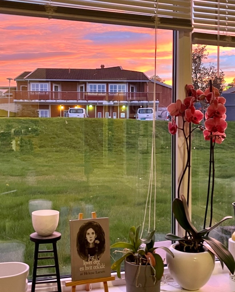 Himmelen er den samme, både hos meg og over andre, og en vakker setning jeg fikk i hodet mitt: «under himmelen lever vi.» Og jeg er så utrolig glad for det. Ofte blir himmelen symbolet på der vi er i evigheten, der de som vi har mistet er og ser ned på oss. Men la oss også tenke på akkurat oss også, omfavne jord-livet og menneskene vi lever med, feire selv hverdagens strev og mas. Og i det, kan vi bare nye himmelens nyanser og håpe på godt vær, sånn metaforisk sett, at stormene bare blåser det vonde vekk.