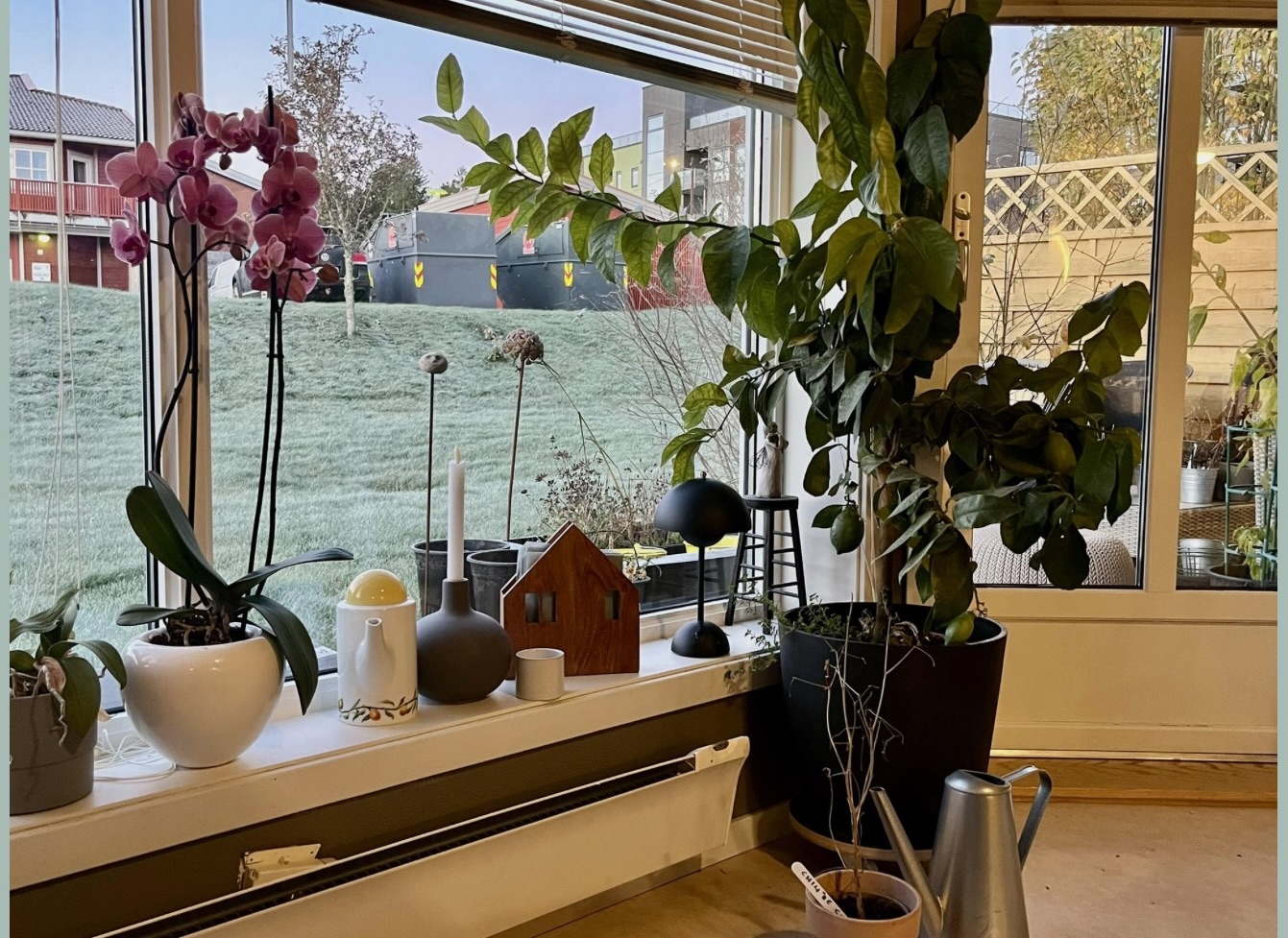 Været er kaldt i dag, og utrolig vakkert med sol over rim. Her er morgen-bildet før sola smeltet plenen delvis. Gradestokken viste minus fire, vår første «skikkelige» vintermorgen denne sesongen. I dag må jeg holde hoften i ro, så jeg er ikke ute og nyter det kalde, varme og friske (ja et «Kinderegg» på utsida!). Inne gjør jeg det beste, hopper litt rundt i små porsjoner, sitter ned og koser meg med kokkelering og at jeg har et trygt og trivelig hjem og om et par timer får jeg besøk av favoritt-folka mine igjen! «Kinderegg» det og!