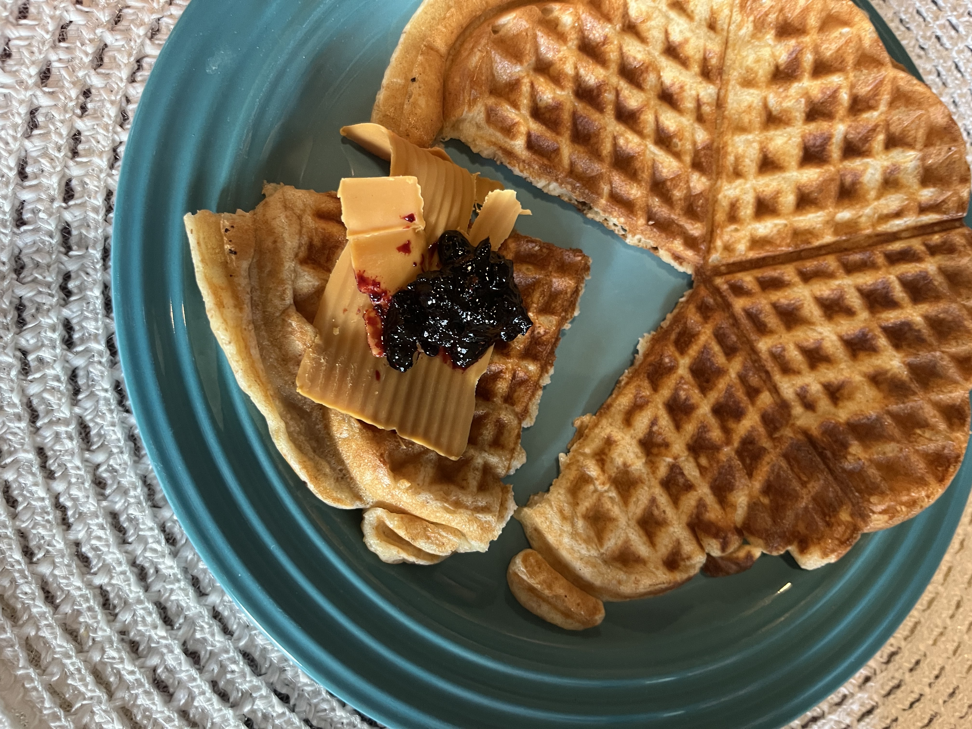 – Servere vafler ala illustrasjonen her, kaffe, kaker eller alt på en gang! (Listen fortsetter under bildet.)
