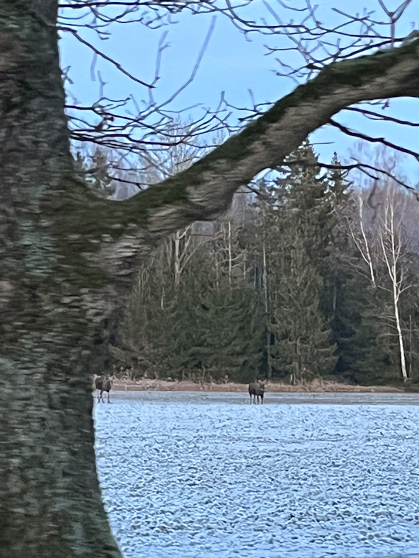 Livet går videre. Hjulene og jula ruller av gårde. Vi skriver 26. desember 2025, kalt andre juledag. Jeg skal hjem fra juleferien min. Det er litt vemodig, men heldigvis: jeg vet at jeg og «mine» sees snart igjen. Takk for meg! Ps. håper jeg har greid å slutte å ønske meg altfor mye. At jeg ved å også være mer tilstede hos andre, gir. Når jeg gir i relasjon og får lov å samhandle, har det i seg selv også fysisk verdi for meg. Jeg trenger færre «gullringer» og jeg samler i stedet mer og mer på opplevelser med andre – sånn som elg i barfrost.