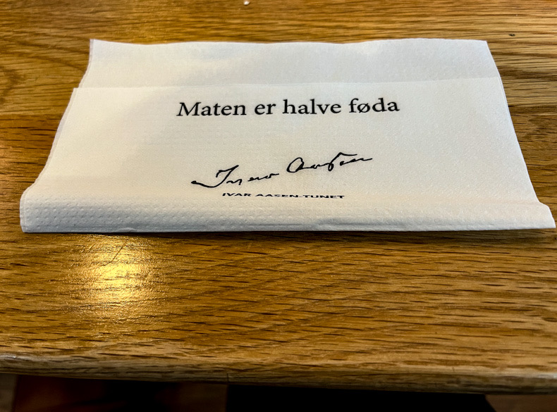 Ja, maten er bare halve føda. Hvordan bordet er dekket, hvordan maten ser ut, hvordan praten er – ja all atmosfæren er med på å mette og gi velbehag – og motsatt, hvis ingen ting er på stell. For meg i min oppvekst – siden jeg alltid har hatt asperger syndrom – var det med forutsigbarhet noe som gav meg mening, harmoni og glede. Som at jeg visste at ved middagstid satt vi sammen eller det faktum at det faktisk var middag her dag og at dagen «startet med frokost».